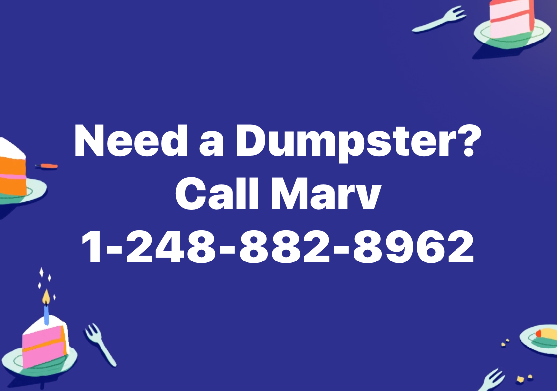 If you are doing work at your home or on a commercial job and you need a dumpster. Call Marv today 1-248-882-8962. He has all sizes. He has dumpsters on wheels too, driveway safe. CALL NOW! 248-882-8962